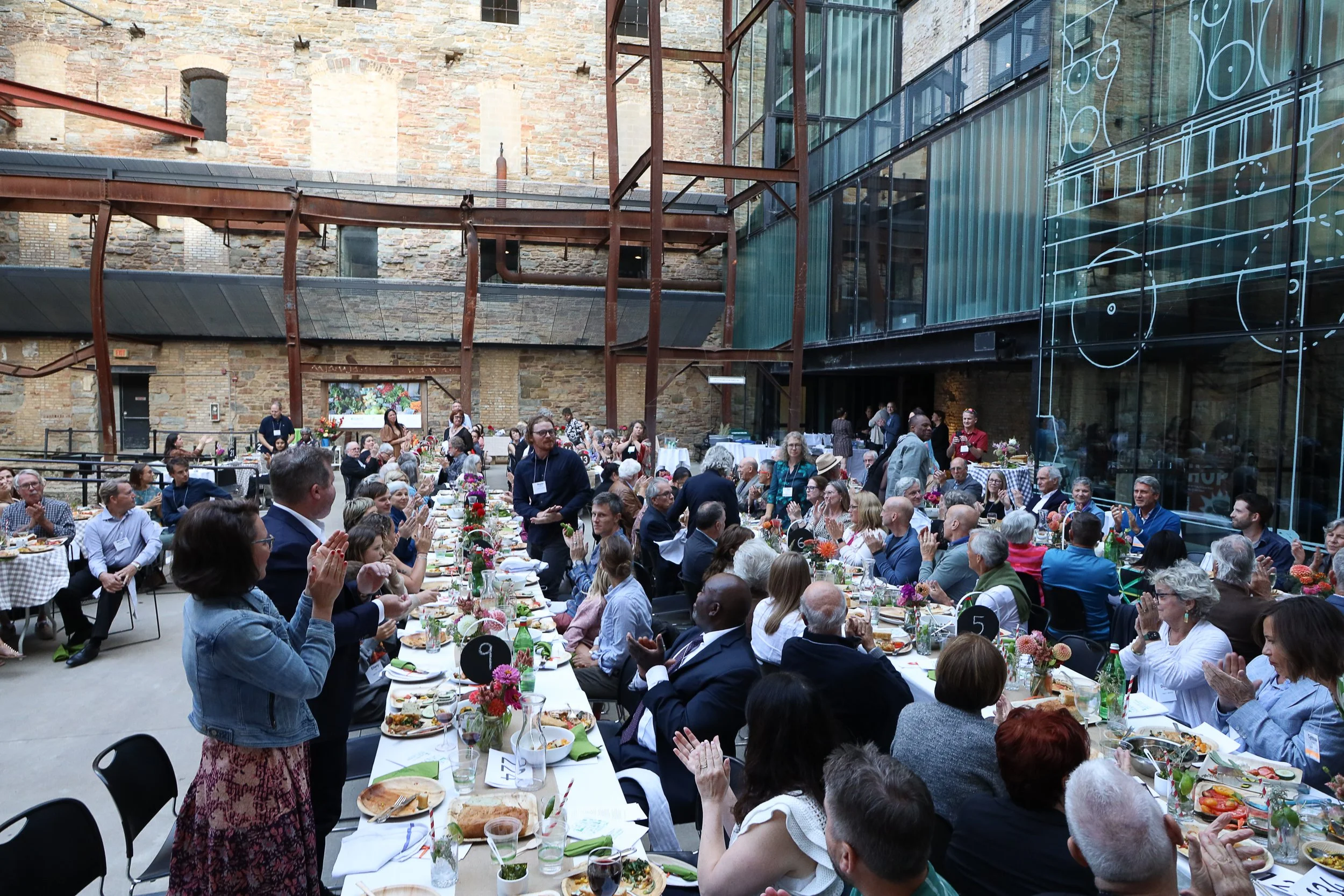 Gathered at long farm tables in the historic Mill City Museum Courtyard, new friends were made and all connected with neighbors, supporters, and stakeholders passionate about our community, health, the environment, and our local, regenerative food system.