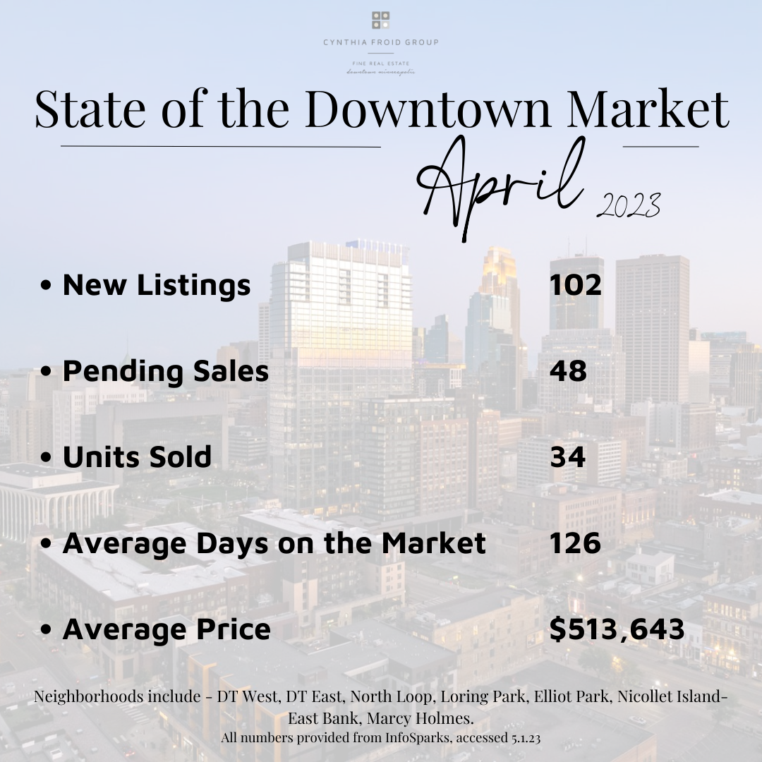 EACH MONTH, WE ASSESS THE STATE OF THE DOWNTOWN MINNEAPOLIS REAL ESTATE MARKET! THESE STATS INCLUDE A SPECIFIC AREA OF DOWNTOWN MINNEAPOLIS (DOWNTOWN EAST, DOWNTOWN WEST, NORTH LOOP, LORING PARK, ELLIOT PARK, NICOLLET ISLAND/EAST BANK, AND MARCY HOLMES). WE WOULD BE HAPPY TO PROVIDE A REPORT SPECIFICALLY FOR YOU! PLEASE CLICK THE LINK BELOW AND INCLUDE YOUR BUILDING AND CONTACT INFO TO REQUEST YOUR CUSTOMIZED REPORT.