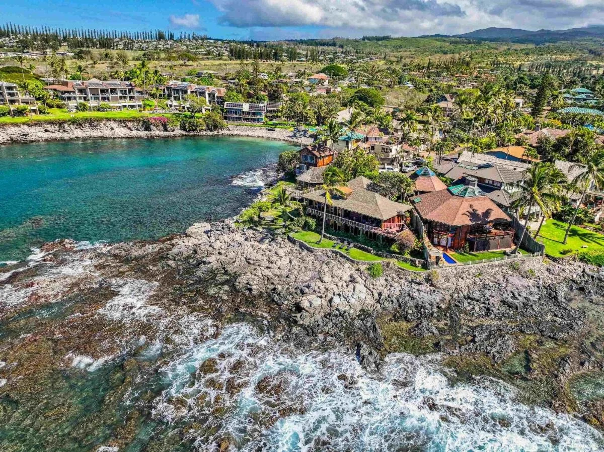This co-ownership offering is to join the owner in an LLC by acquiring a 1/6 interest for $1,250,000 cash (up to 5/6 available),and includes a set exit strategy where the new LLC co-owners agree to sell together in the future. Poised at the very tip of a coveted oceanfront point in Napili, this extraordinary Polynesian-inspired pole home offers rare, direct ocean access and more than 100 feet of dramatic Pacific frontage. Located within an intimate, gated enclave on Papaua Place—home to just ten residences—this property enjoys exceptional privacy. Designed by renowned architect Frank Stiller and originally built in 1981 for noted Maui restaurateur Rob Thibaut, the residence is a celebration of authentic island craftsmanship, featuring rich Hawaiian koa wood, lava rock accents, and a timeless connection to its natural surroundings. A spacious wraparound lanai captures sweeping 270-degree views and year-round sunsets, spanning from Lanai and Molokai to Kapalua. The Pacific Ocean becomes your daily playground, with surfing, snorkeling with sea turtles, swimming, and seasonal whale watching directly offshore. Both the primary and guest bedrooms are positioned to enjoy mesmerizing ocean views and the soothing sounds of the sea. Additional features include a game room, sauna, jacuzzi, and an upper-level observation room ideal for whale watching, yoga, or a private study. Conveniently located near world-class golf courses, luxury resorts and spas, acclaimed dining, and the legendary waters of Honolua Bay, this one-of-a-kind oceanfront offering presents an unparalleled Maui lifestyle—where architecture, location, and nature converge seamlessly.