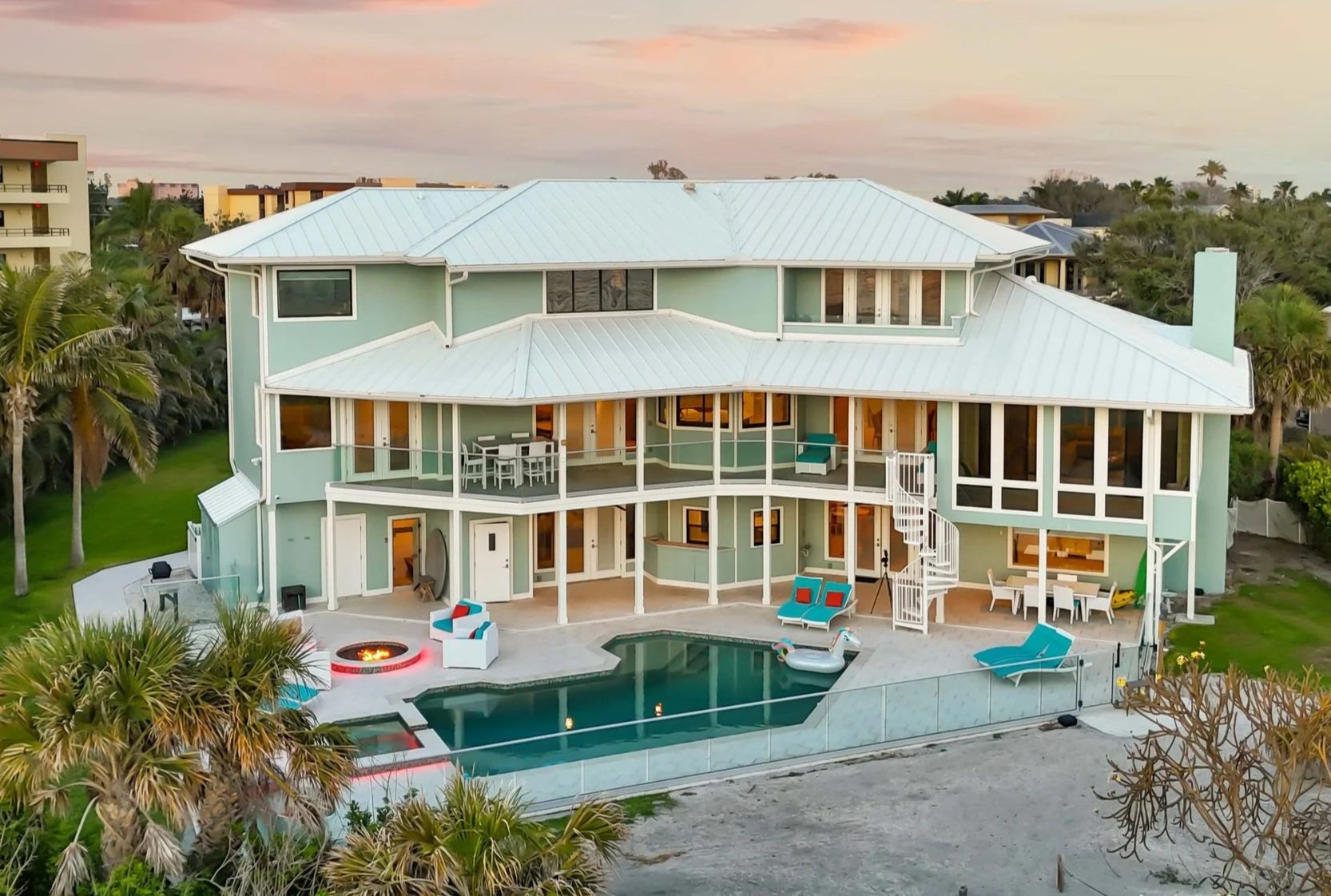 Welcome to one of the Gulf Coast’s most private and luxurious beachfront estates—an extraordinary opportunity to own a rare stretch of direct Gulf frontage in Florida. Tucked away at the end of a quiet cul-de-sac and secured behind dual gated entrances, this expansive oceanfront property is enveloped in lush tropical landscaping and designed for those who value seclusion, sophistication, and long-term legacy. Boasting 233 feet of pristine beachfront along the Gulf of Mexico, this remarkable estate spans over 8,000 square feet under air and has been completely reimagined through a meticulous, high-end renovation. It artfully blends timeless elegance with resort-style comfort, offering panoramic water views from nearly every room. Here, no neighbors interrupt the horizon—only serene coastal breezes and iconic Florida sunsets that feel like they belong to you alone. Designed for multi-generational living or grand-scale entertaining, this coastal residence features five private bedroom suites—including a separate in-law or nanny suite—as well as a dedicated home office that can serve as a sixth bedroom. Two full gourmet kitchens, five expansive balconies, and an elevator servicing all three levels ensure exceptional comfort and convenience throughout.