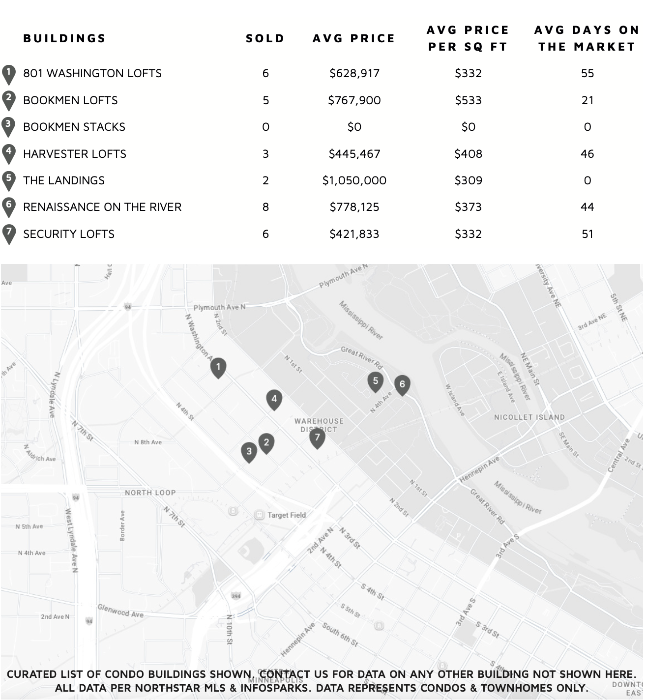 Each year we assess the state of the Downtown Minneapolis real estate market. The numbers below are a snapshot of activity in North Loop. If you would like more information, we would be happy to provide a report specifically tailored to your needs. Please click the link below to request your customized report.