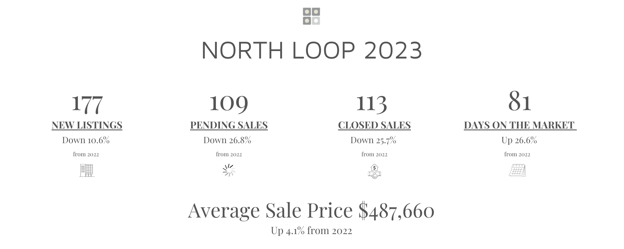Each year we assess the state of the Downtown Minneapolis real estate market. The numbers below are a snapshot of activity in the North Loop in 2023. This data reflects condos and townhomes only. If you would like more information, we would be happy to provide a report specifically tailored to your needs. Please click the link below to request your customized report.